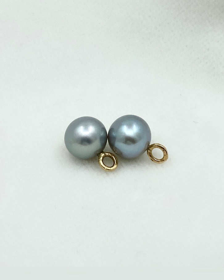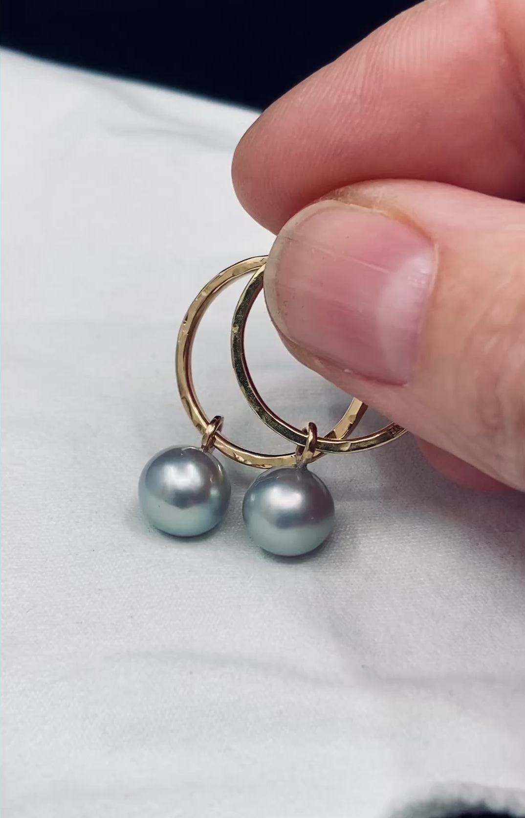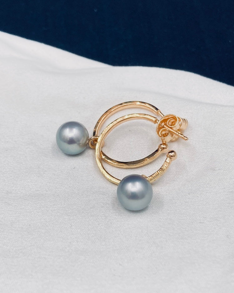 Vackert grå odlade sötvattens pärlor med fästet i 18 k rödguld som har samma hamrade yta som Nerthus örhängena.